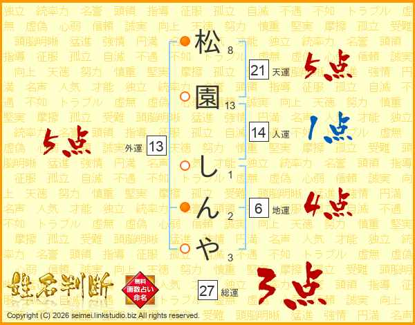 松園しんやさんの総運は27画の3点!