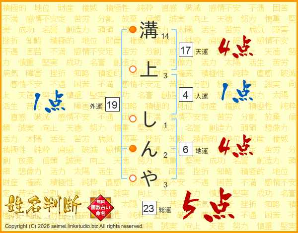 溝上しんやさんの総運は23画の5点!