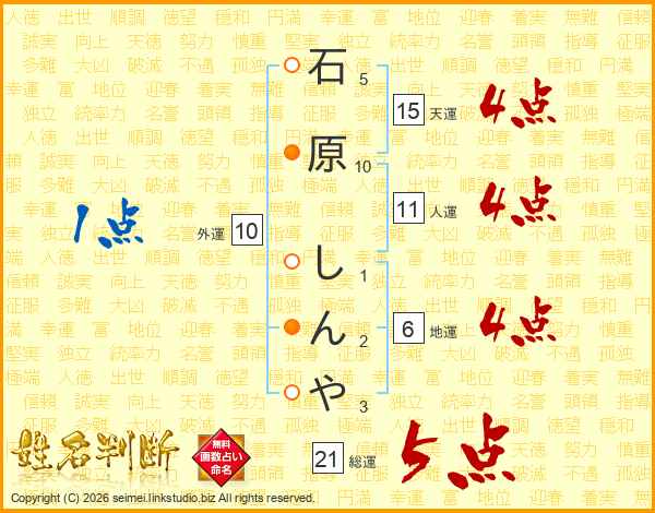 石原しんやさんの総運は21画の5点!