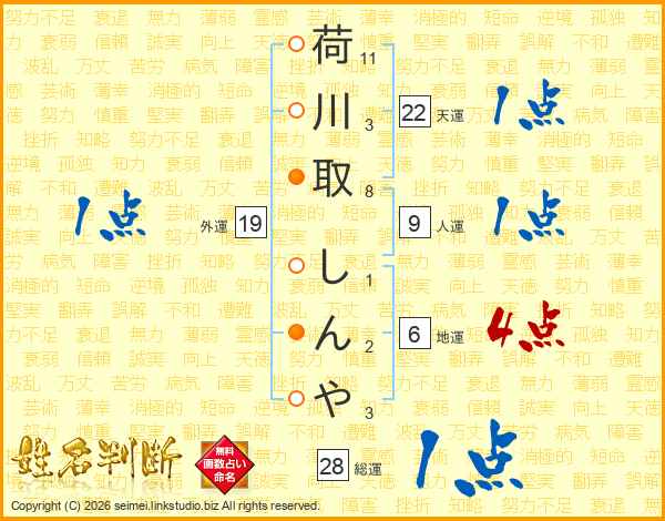 荷川取しんやさんの総運は28画の1点!