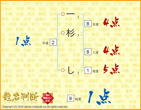一杉しさんの総運は9画の1点!