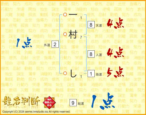 一村しさんの総運は9画の1点!