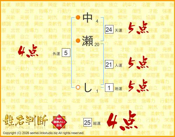 中瀬しさんの総運は25画の4点!