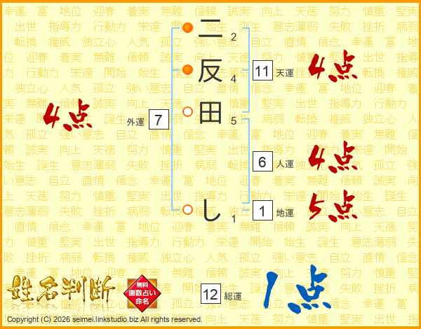 二反田しさんの天運は11画の4点!