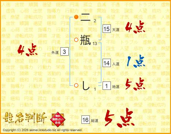 二瓶しさんの天運は15画の4点