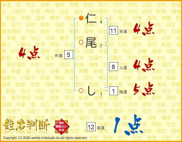 仁尾しさんの総運は12画の1点!