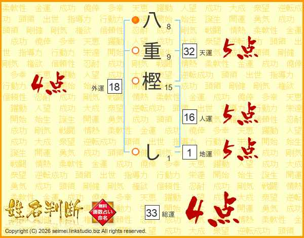 八重樫しさんの総運は33画の4点!