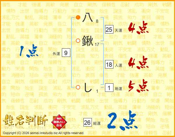八鍬しさんの総運は26画の2点!