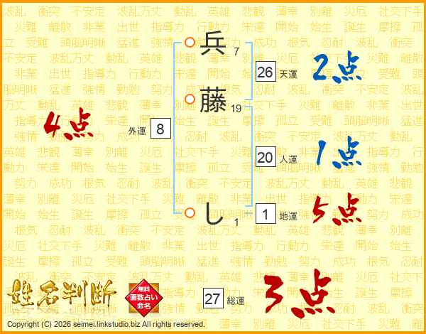 兵藤しさんの天運は26画の2点!