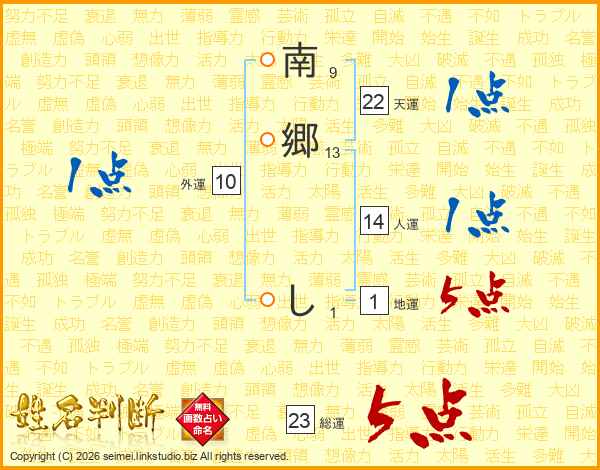 南郷しさんの総運は23画の5点!