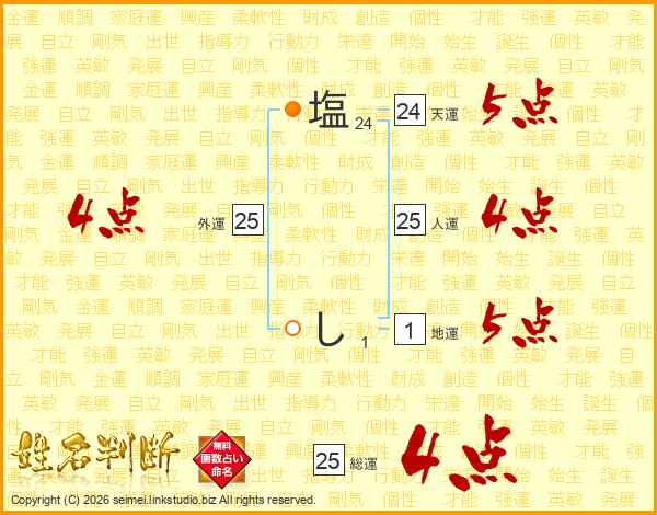 塩しさんの総運は25画の4点!