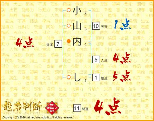 小山内しさんの総運は11画の4点