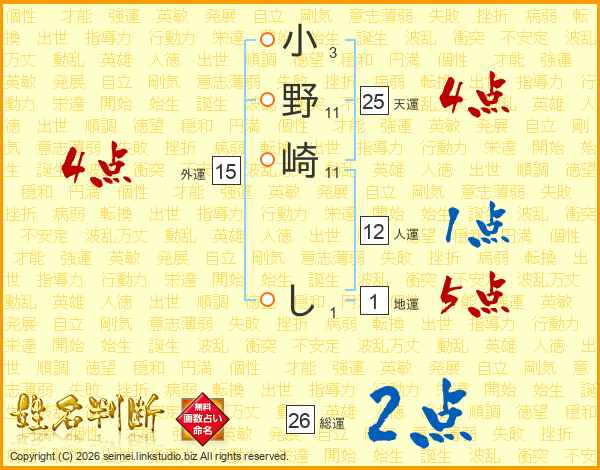 小野崎しさんの総運は26画の2点!