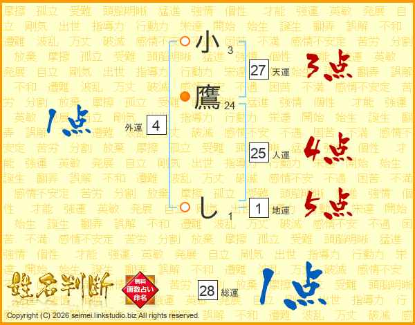 小鷹しさんの総運は28画の1点!