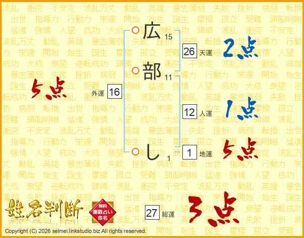 広部しさんの総運は27画の3点!