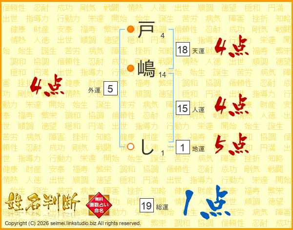 戸嶋しさんの総運は19画の1点!