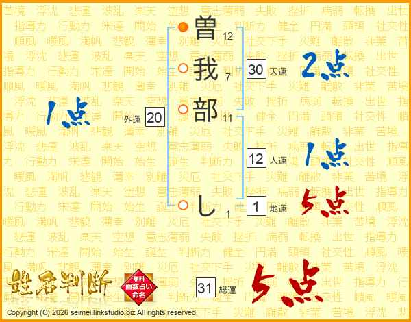 曽我部しさんの総運は31画の5点!
