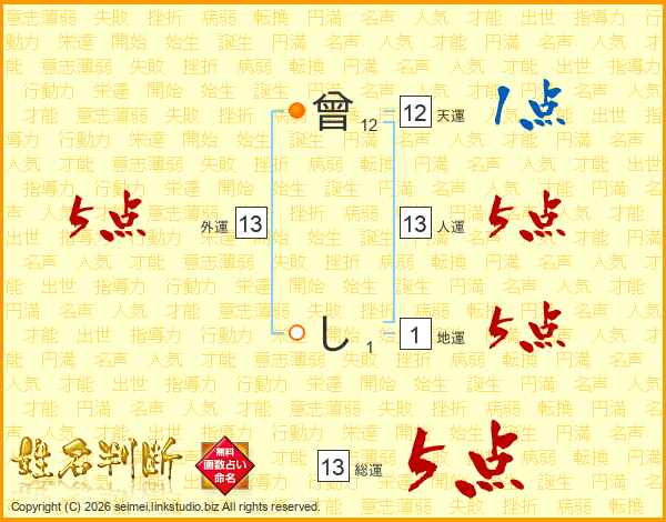 曾しさんの総運は13画の5点!