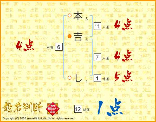 本吉しさんの天運は11画の4点!