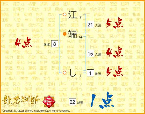 江端しさんの総運は22画の1点!