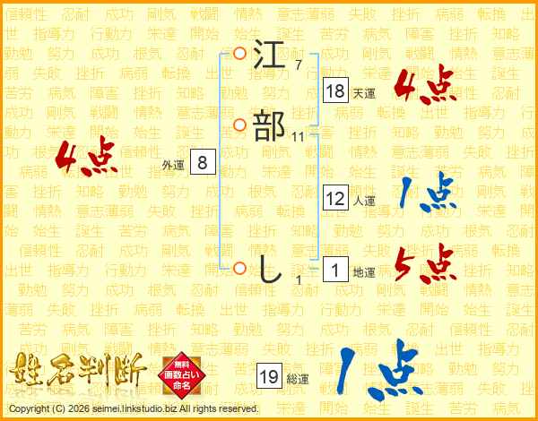 江部しさんの総運は19画の1点!