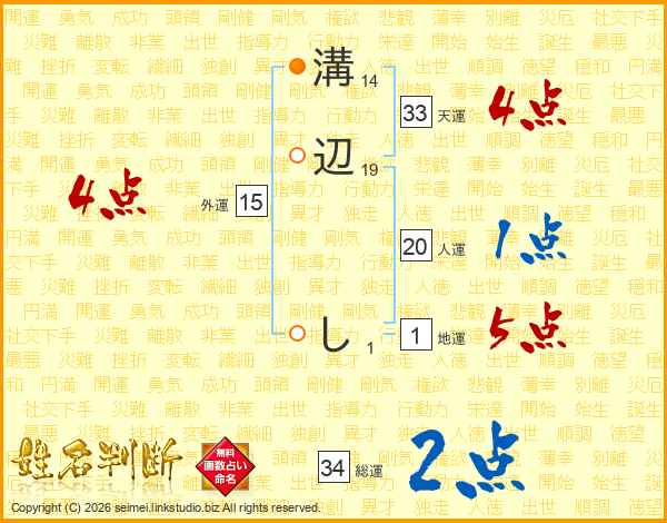 溝辺しさんの総運は34画の2点!