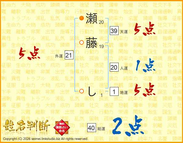 瀬藤しさんの天運は39画の5点!