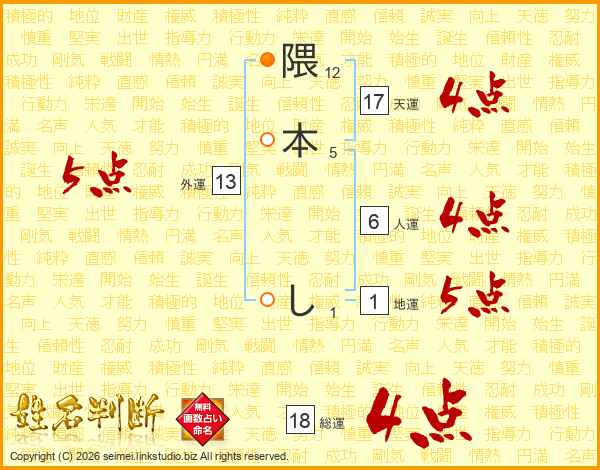 隈本しさんの総運は18画の4点!
