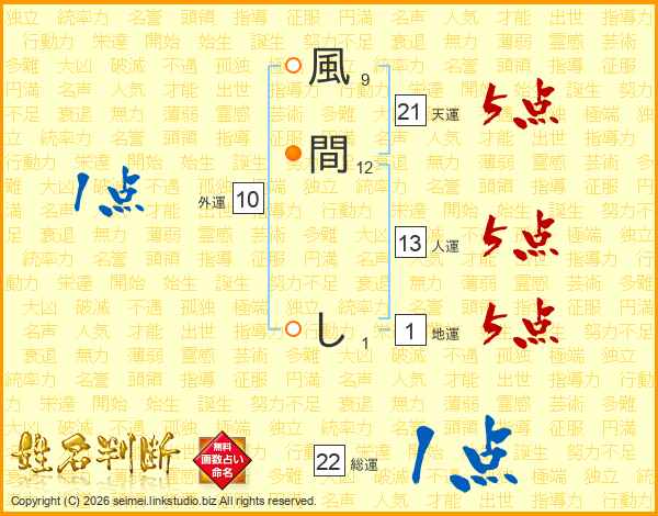 風間しさんの総運は22画の1点!