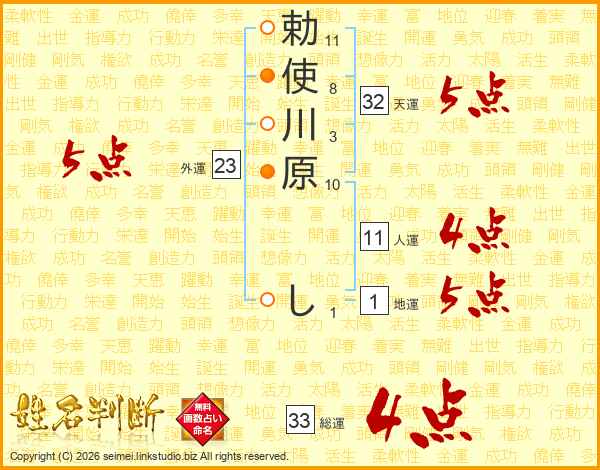 勅使川原しさんの総運は33画の4点!