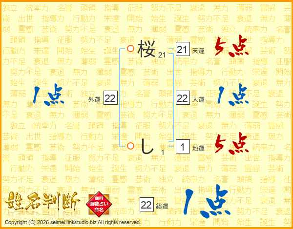 桜しさんの人運は22画の1点!