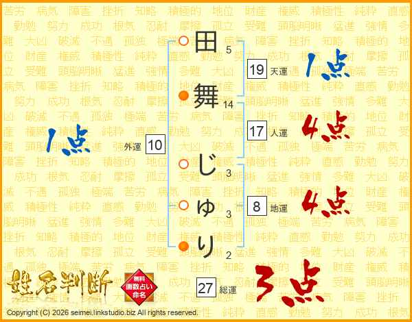 田舞じゅりさんの総運は27画の3点!