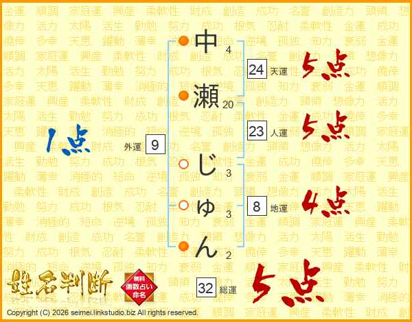 中瀬じゅんさんの総運は32画の5点!