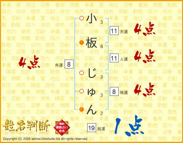 小(3画)板(8画) じ(3画)ゅ(3画)ん(2画)