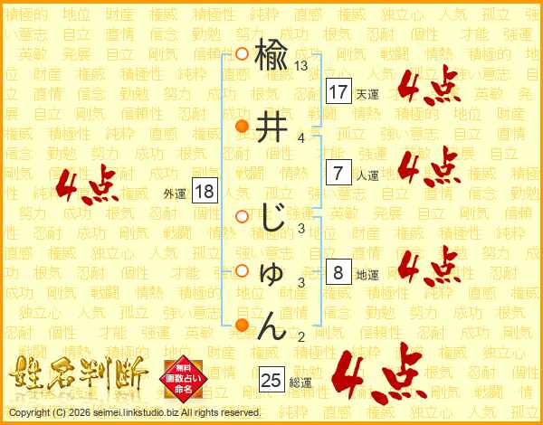 楡井じゅんさんの総運は25画の4点!