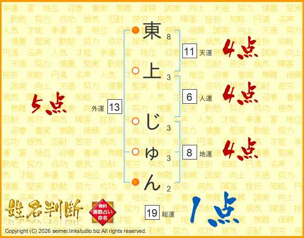 東上じゅんさんの総運は19画の1点!