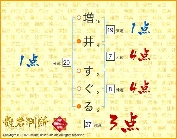 増井すぐるさんの総運は27画の3点!