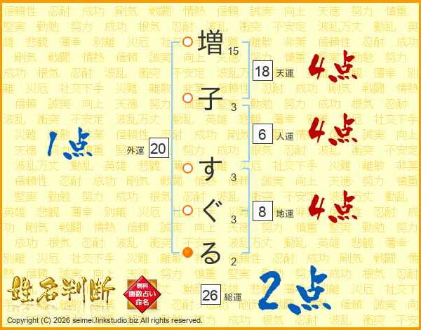増子すぐるさんの総運は26画の2点!