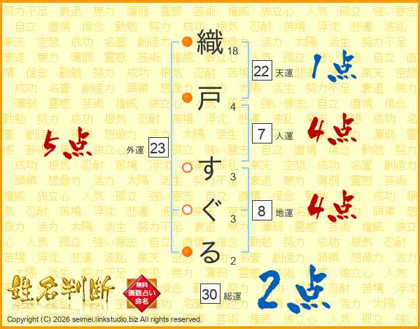 織戸すぐるさんの天運は22画の1点!