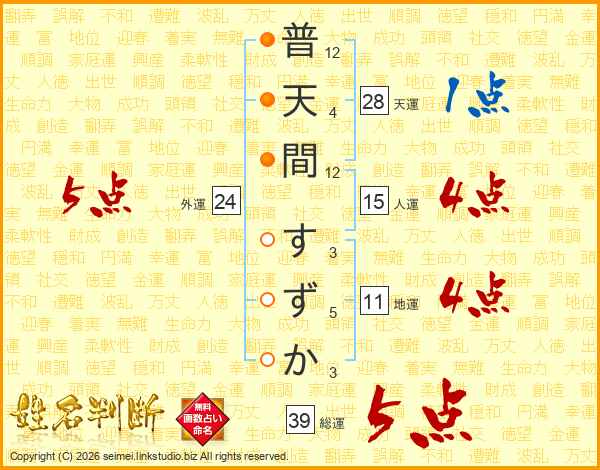 普天間すずかさんの総運は39画の5点!