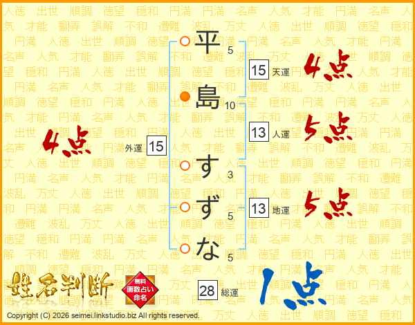平島すずなさんの総運は28画の1点!