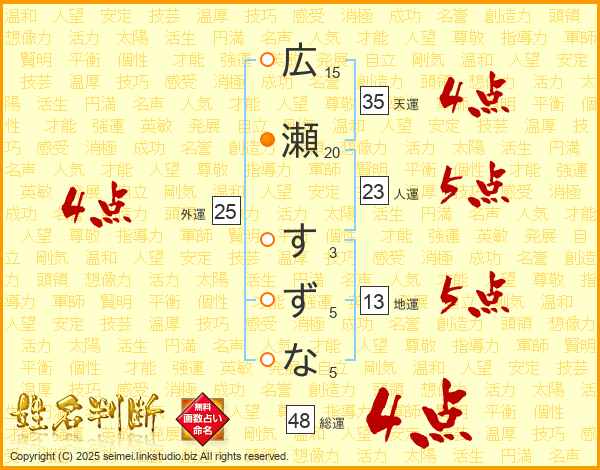 広(15画)瀬(20画) す(3画)ず(5画)な(5画)