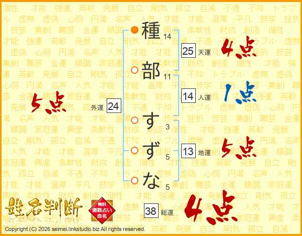 種部すずなさんの総運は38画の4点!