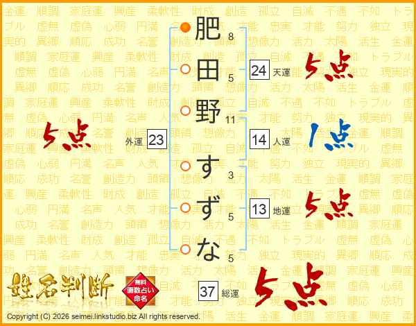 肥田野すずなさんの総運は37画の5点!