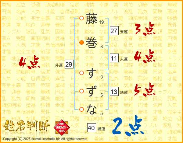 藤(19画)巻(8画) す(3画)ず(5画)な(5画)
