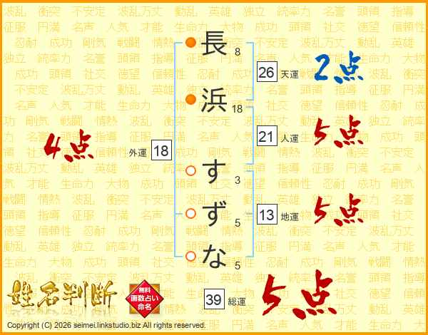 長浜すずなさんの総運は39画の5点!