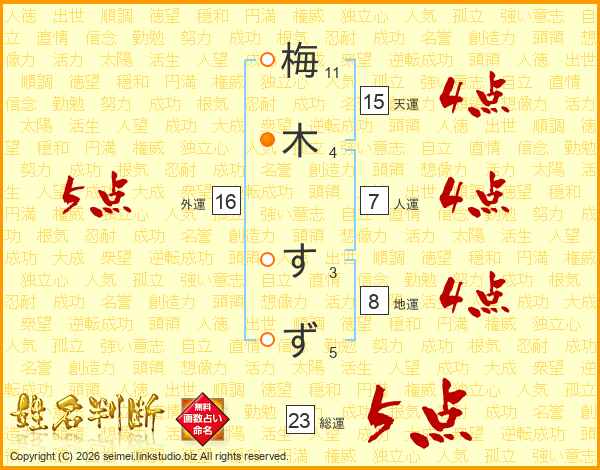 梅木すずさんの総運は23画の5点!