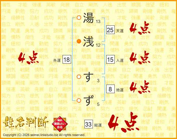 湯浅すずさんの総運は33画の4点!