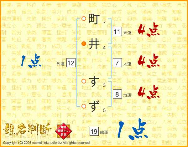 町井すずさんの総運は19画の1点!