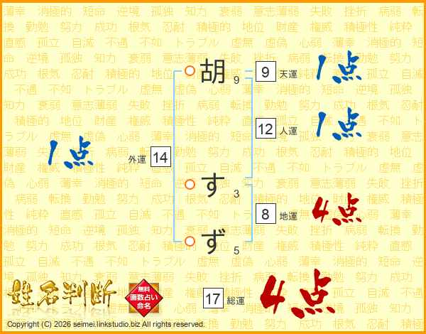 胡すずさんの総運は17画の4点!
